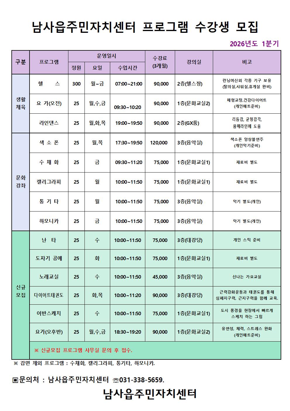용인특례시 처인구 주민자치센터 통합 수강신청