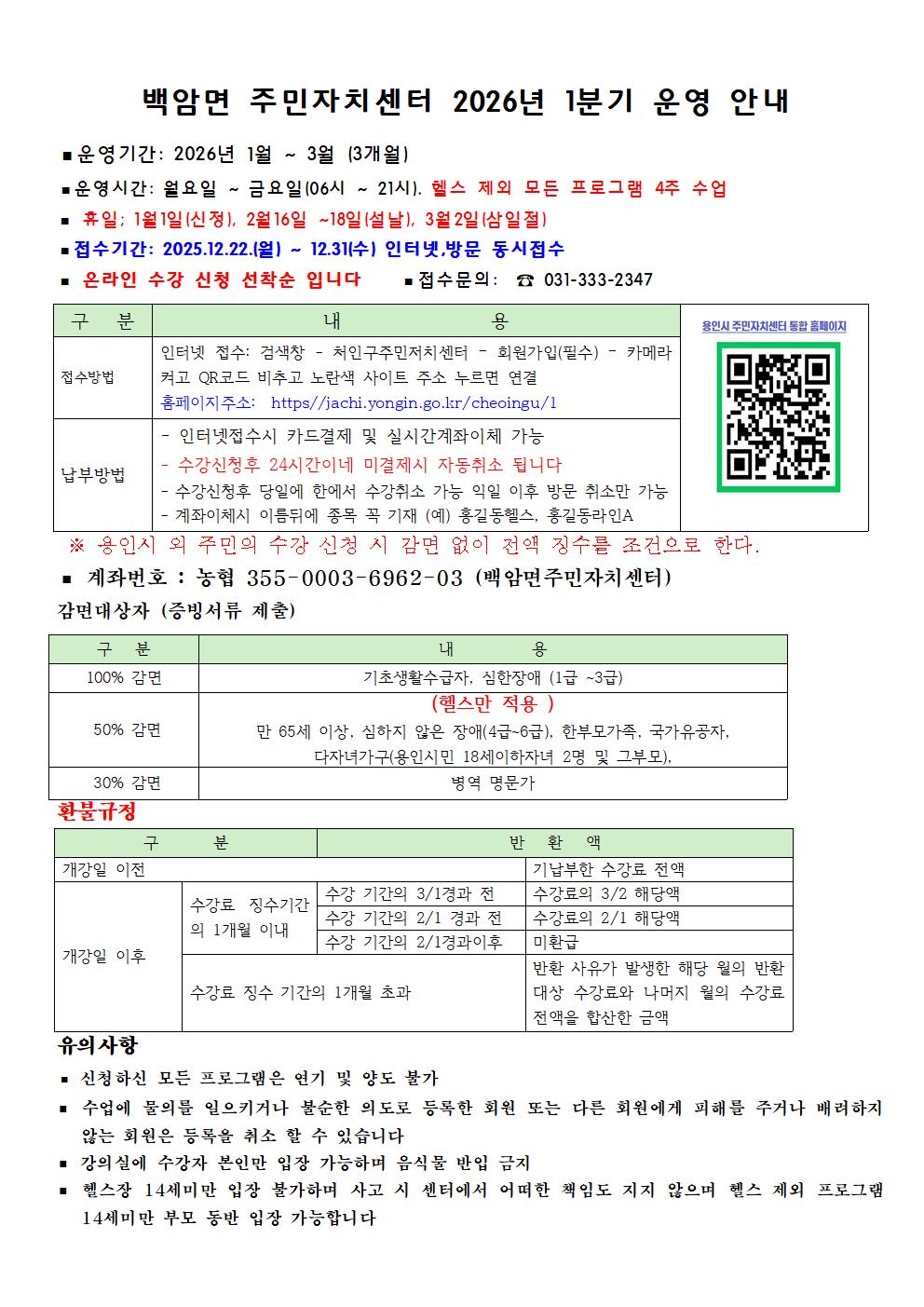 용인특례시 처인구 주민자치센터 통합 수강신청