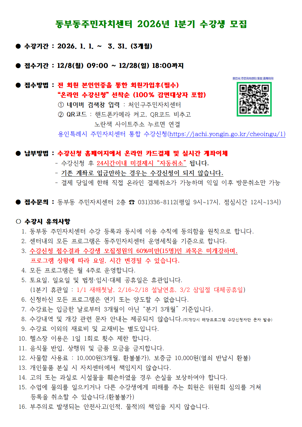 용인특례시 처인구 주민자치센터 통합 수강신청