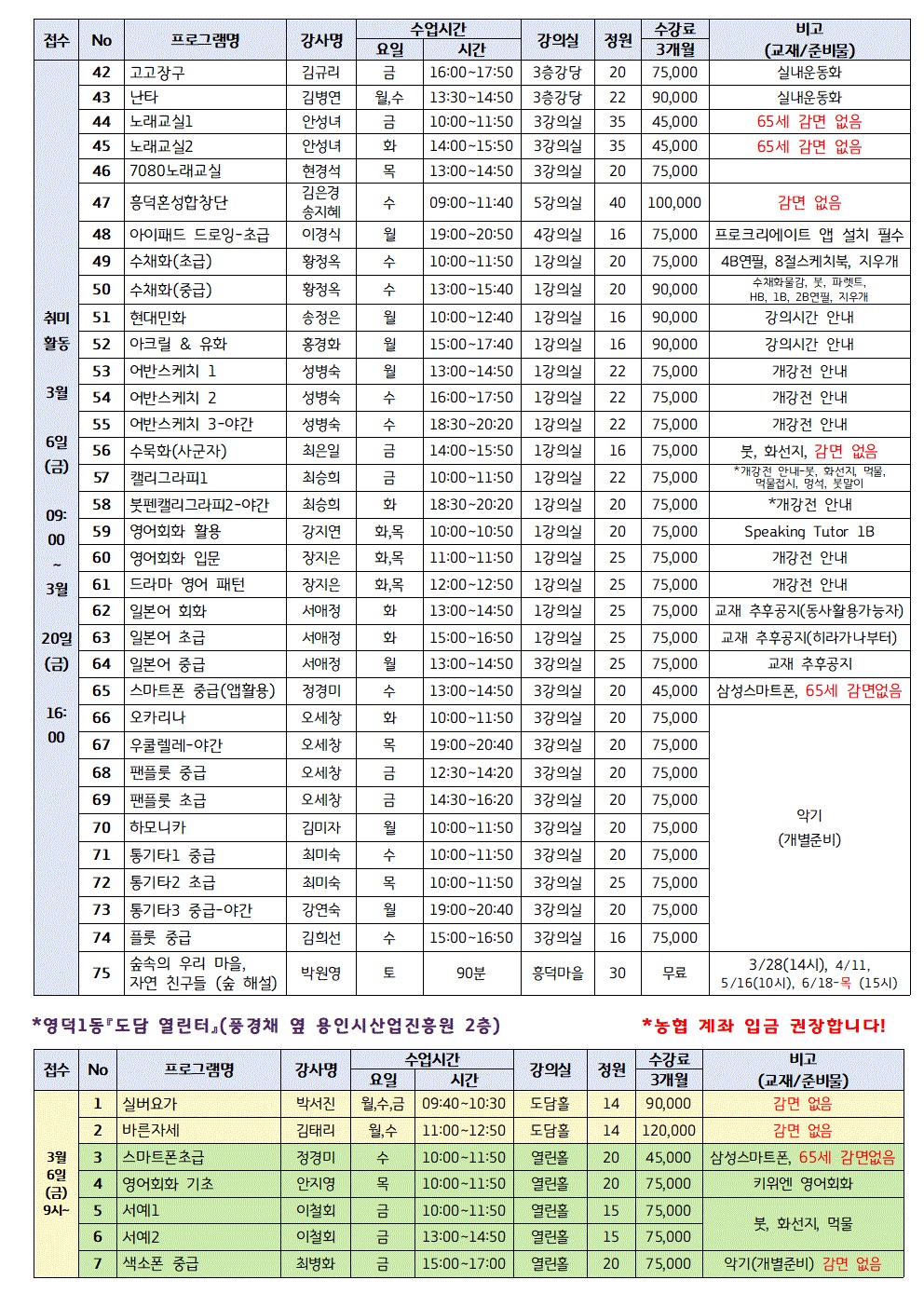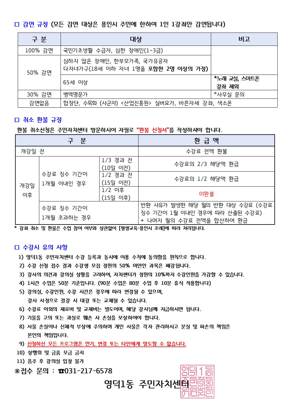 용인특례시 기흥구 주민자치센터 통합 수강신청