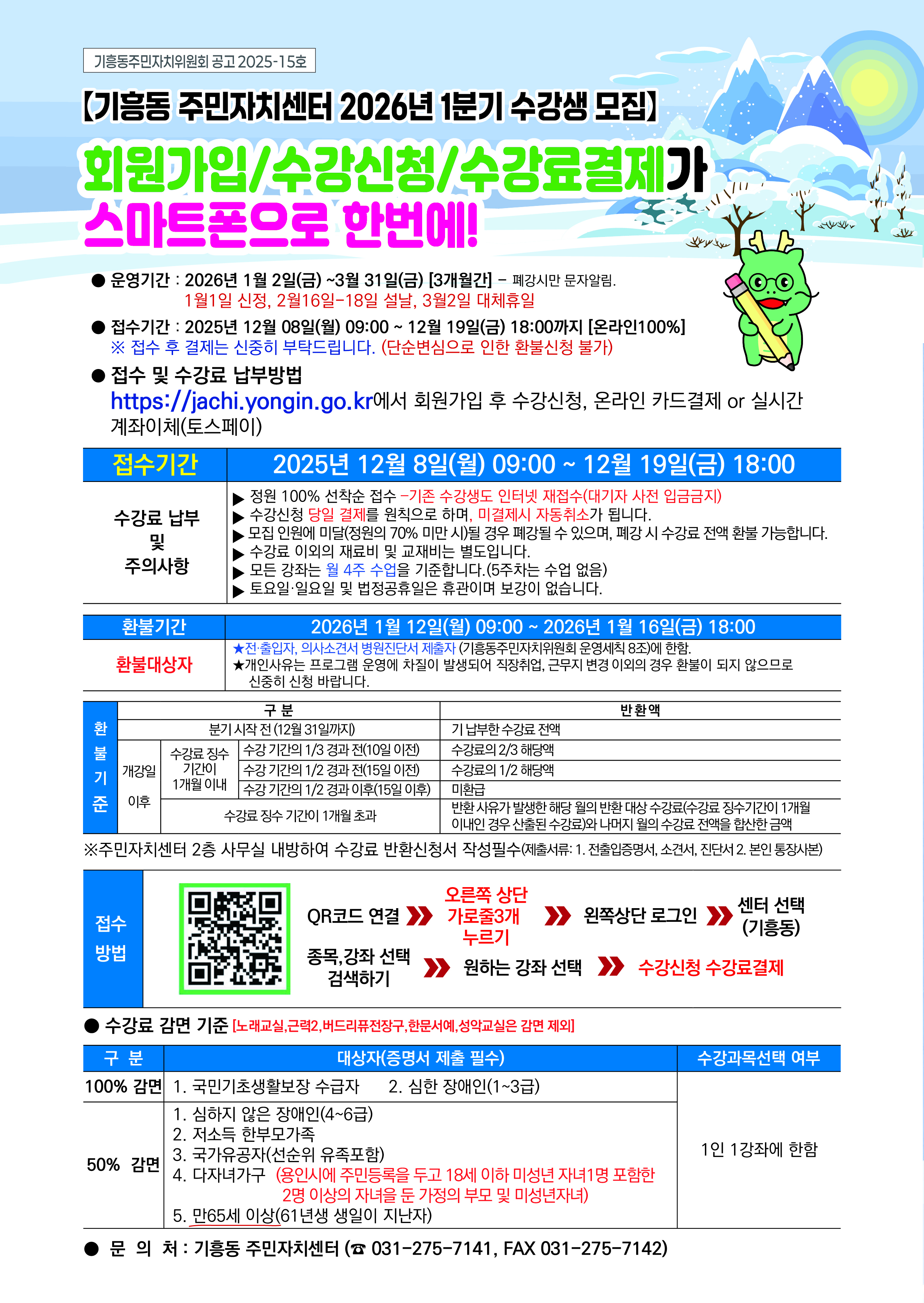 용인특례시 기흥구 주민자치센터 통합 수강신청