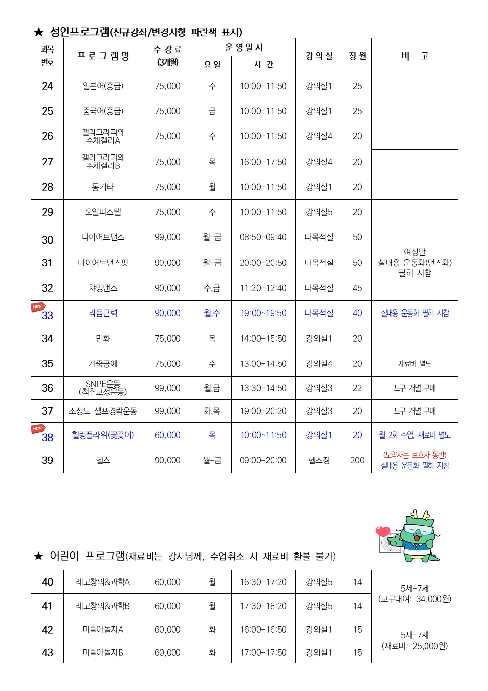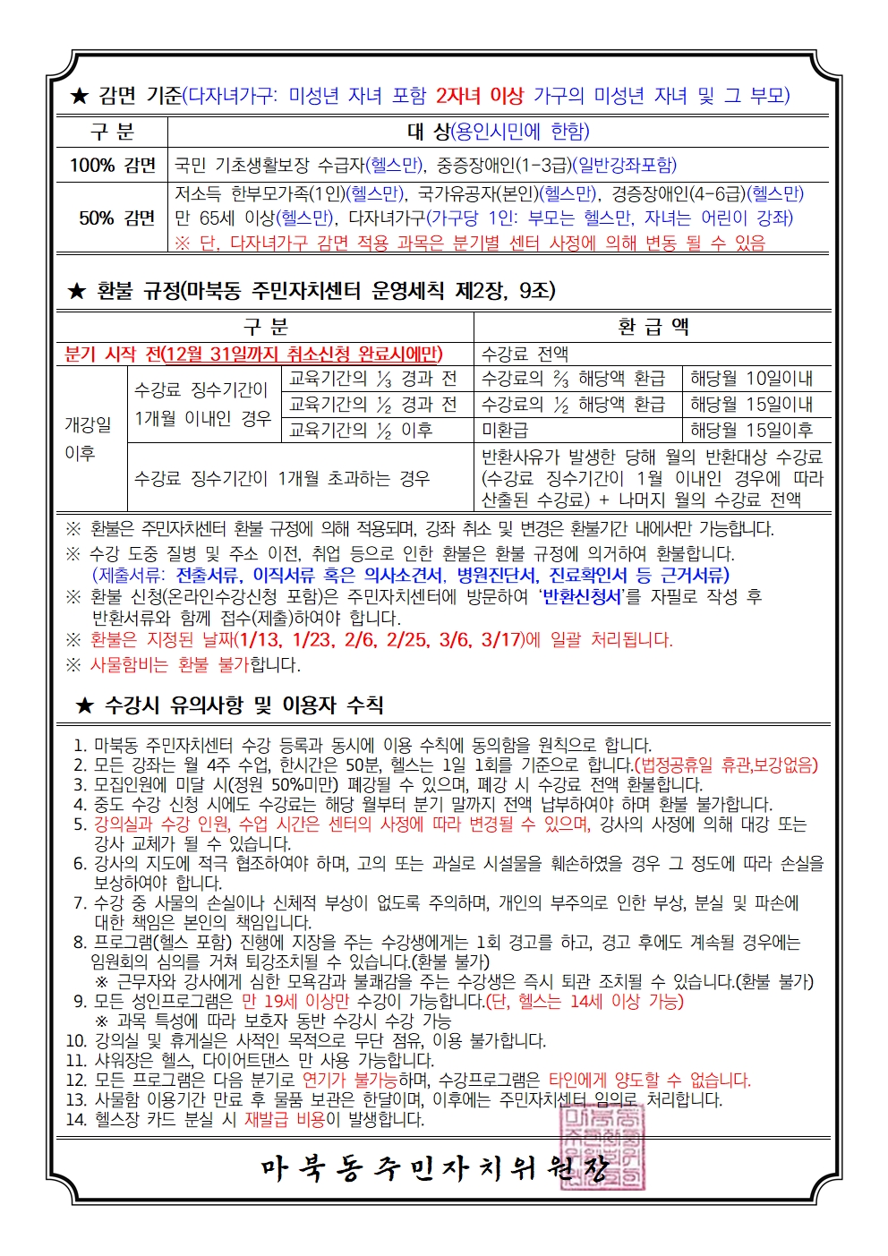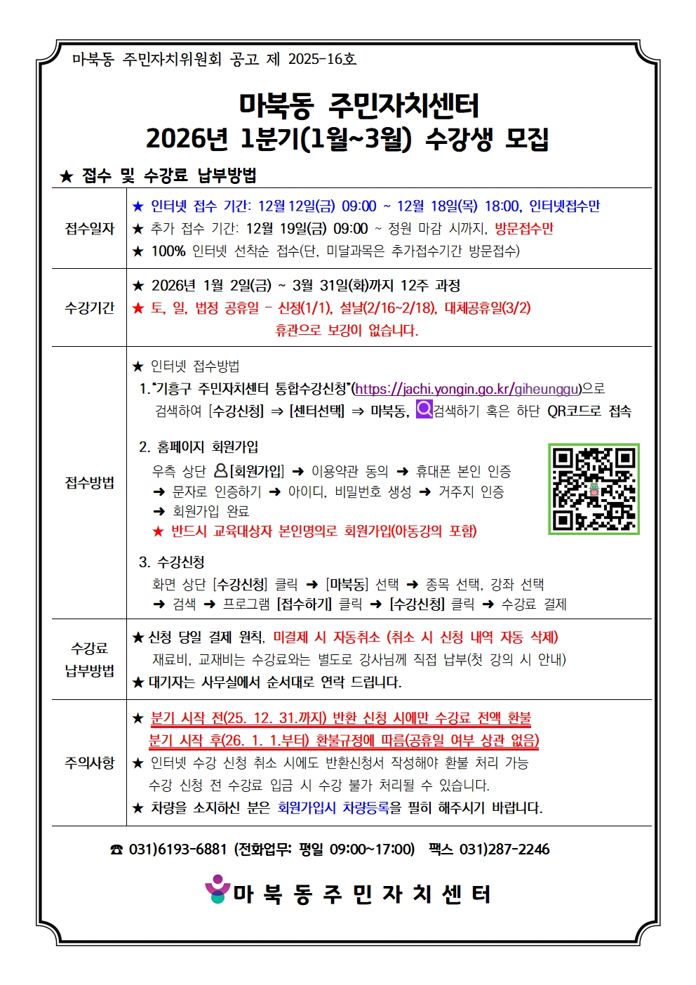 용인특례시 기흥구 주민자치센터 통합 수강신청