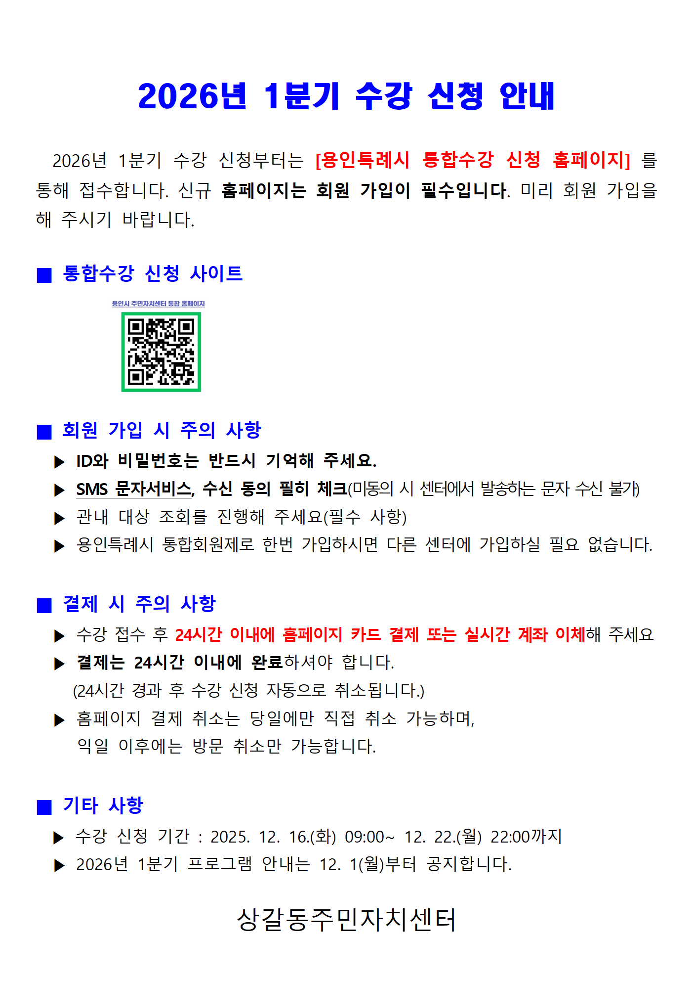 2026년 1분기 수강 신청 안내