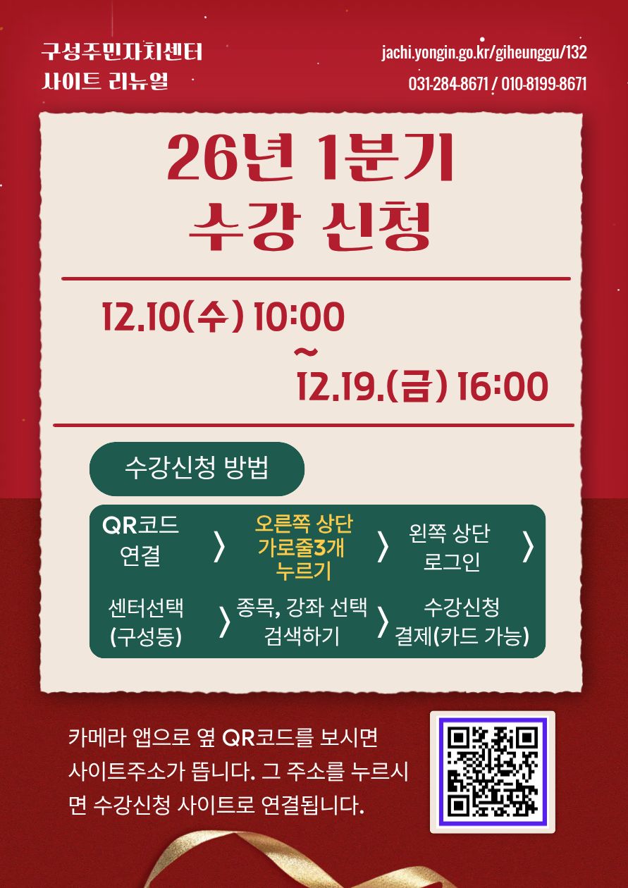 (구성동) 2026년 1분기 프로그램 수강생 모집 일정 안내