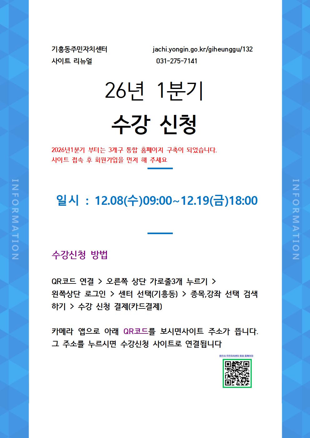 용인특례시 기흥구 주민자치센터 통합 수강신청