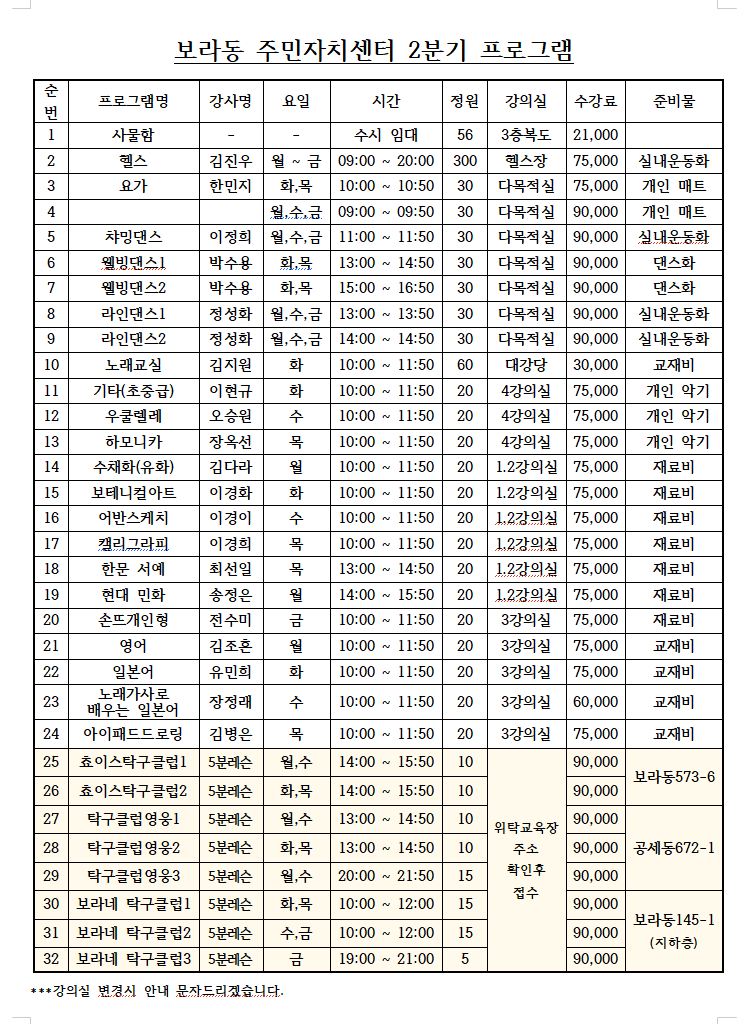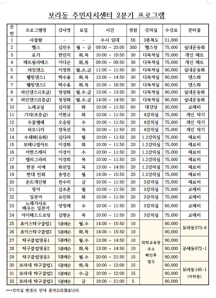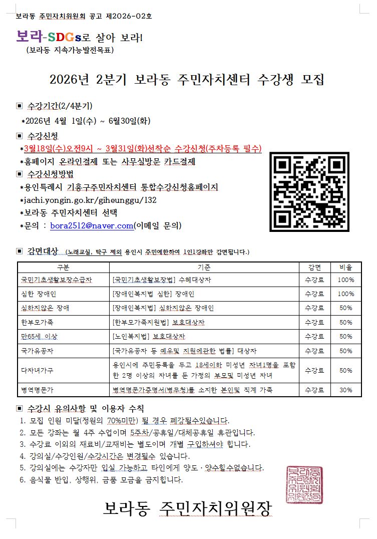 용인특례시 기흥구 주민자치센터 통합 수강신청