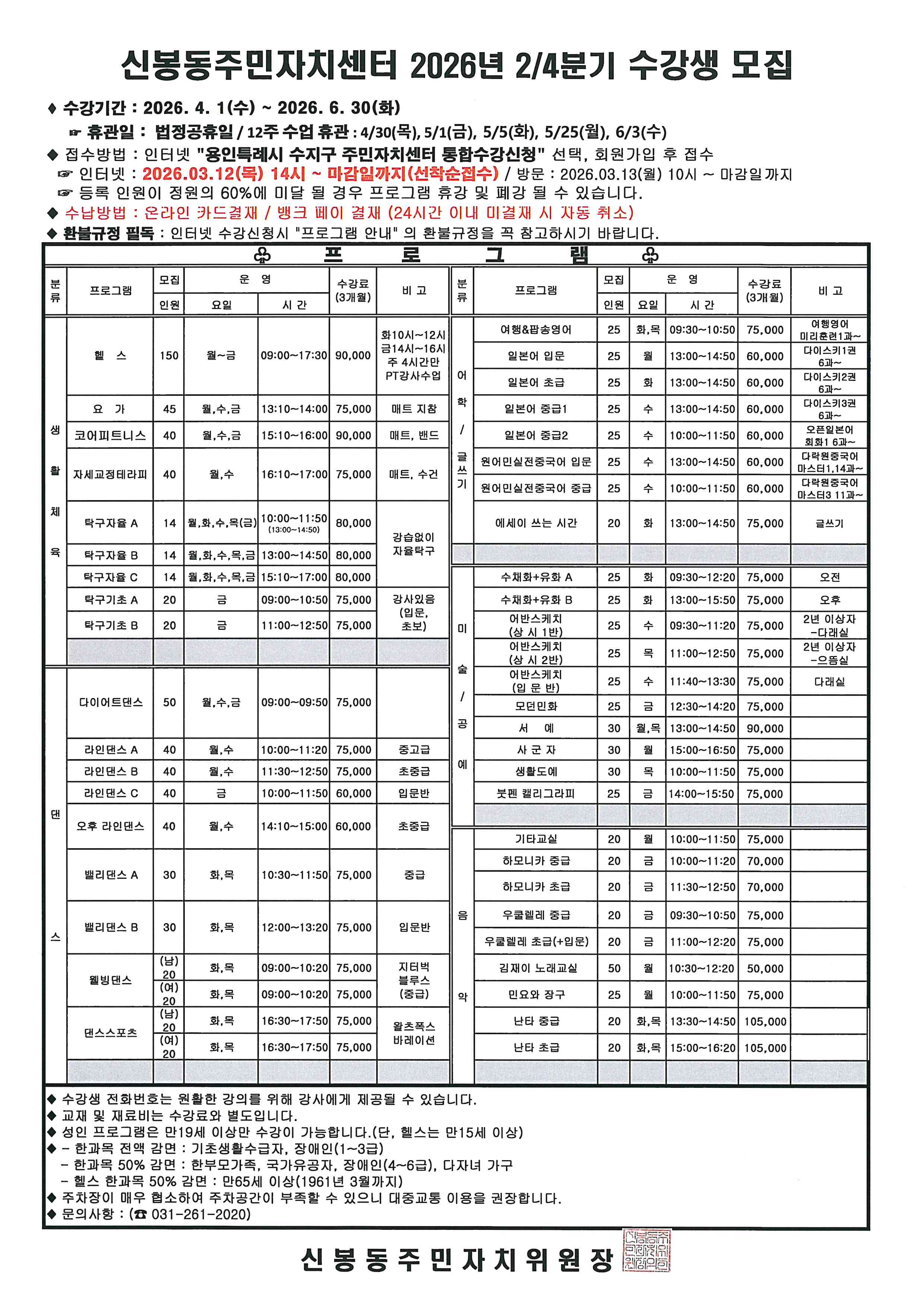 용인특례시 수지구 주민자치센터 통합 수강신청