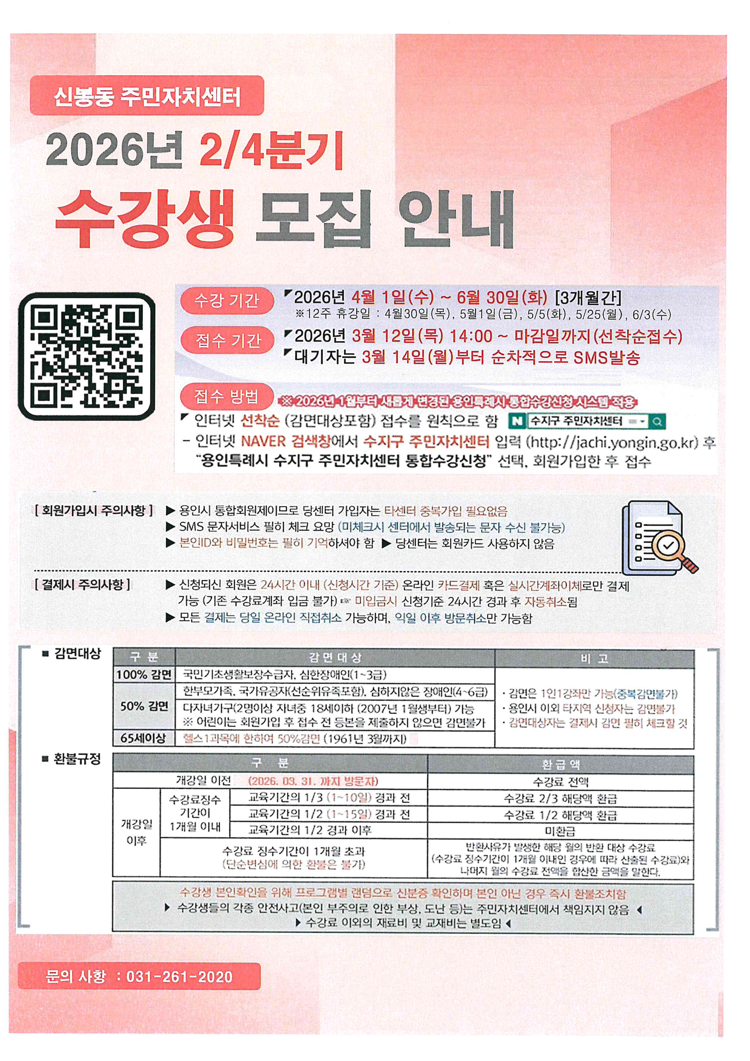 신봉동 주민자치센터 2026년 2/4분기 수강생 모집 안내