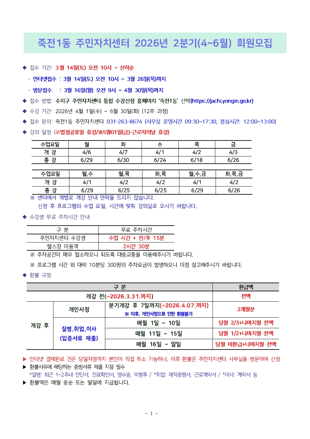 [죽전1동] 2026년 2분기(4~6월) 수강생 모집 공고