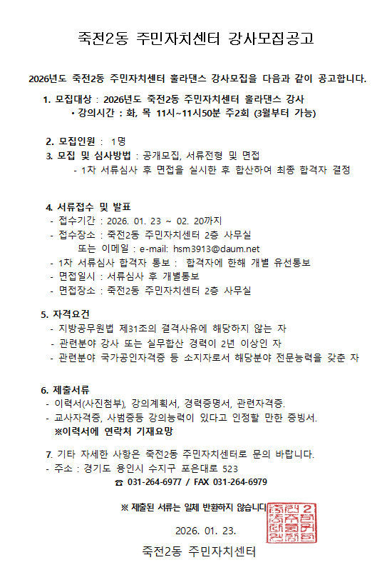 용인특례시 수지구 주민자치센터 통합 수강신청