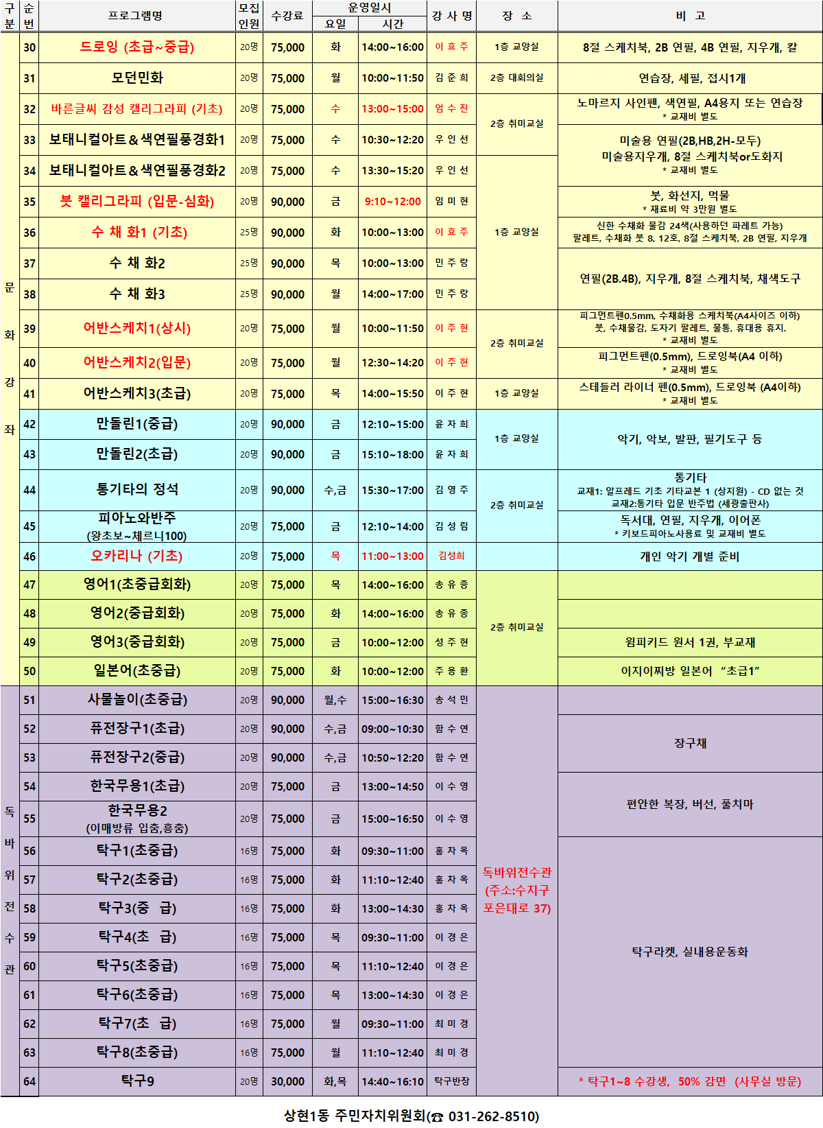 [상현1동]2026년 2분기(4월~6월) 수강생 모집 안내